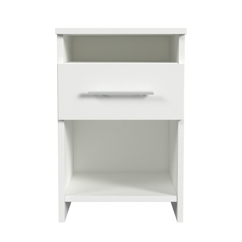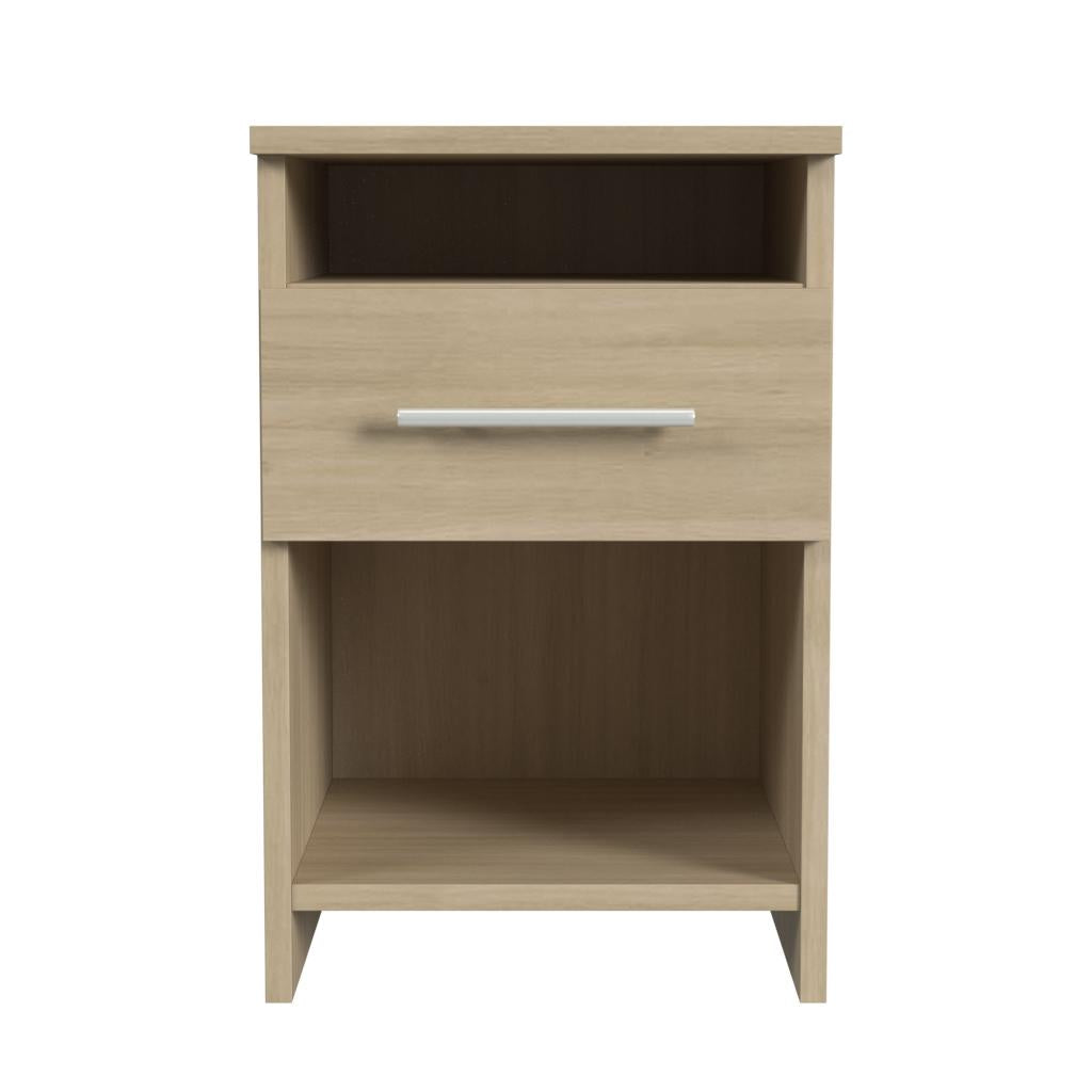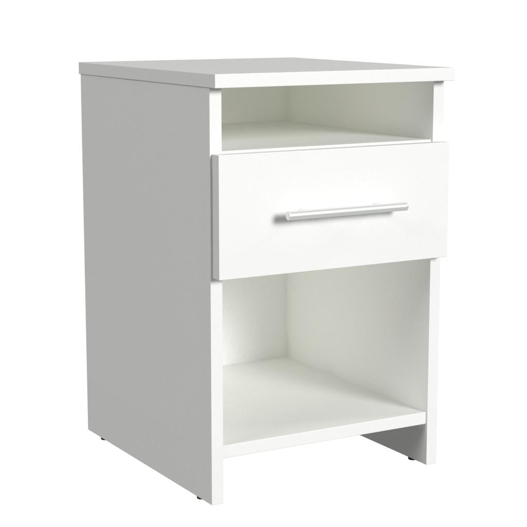 Each nightstand features a large open cubby, full-extension drawer, and an open slot located underneath the finished top.