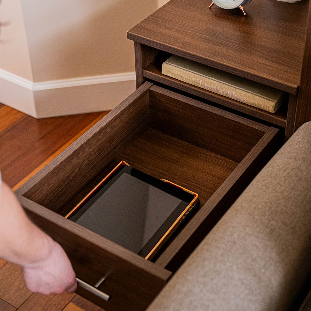 Inovabed nightstands offer style and versatility. It seamlessly integrates with our Murphy beds or stands alone. Featuring ample storage options and sturdy construction, it's both functional and stylish. Plus, it comes with complimentary hardware to match your bed handles. Easy to assemble and built to last, it's the perfect addition to any bedroom.