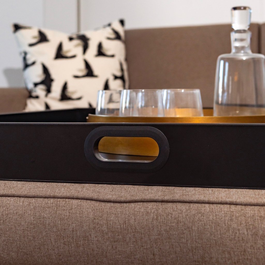 Durable, pre-installed plastic grips on the serving tray ensure easy handling. Covered cut-outs add both practicality and comfort, making entertaining effortless.
