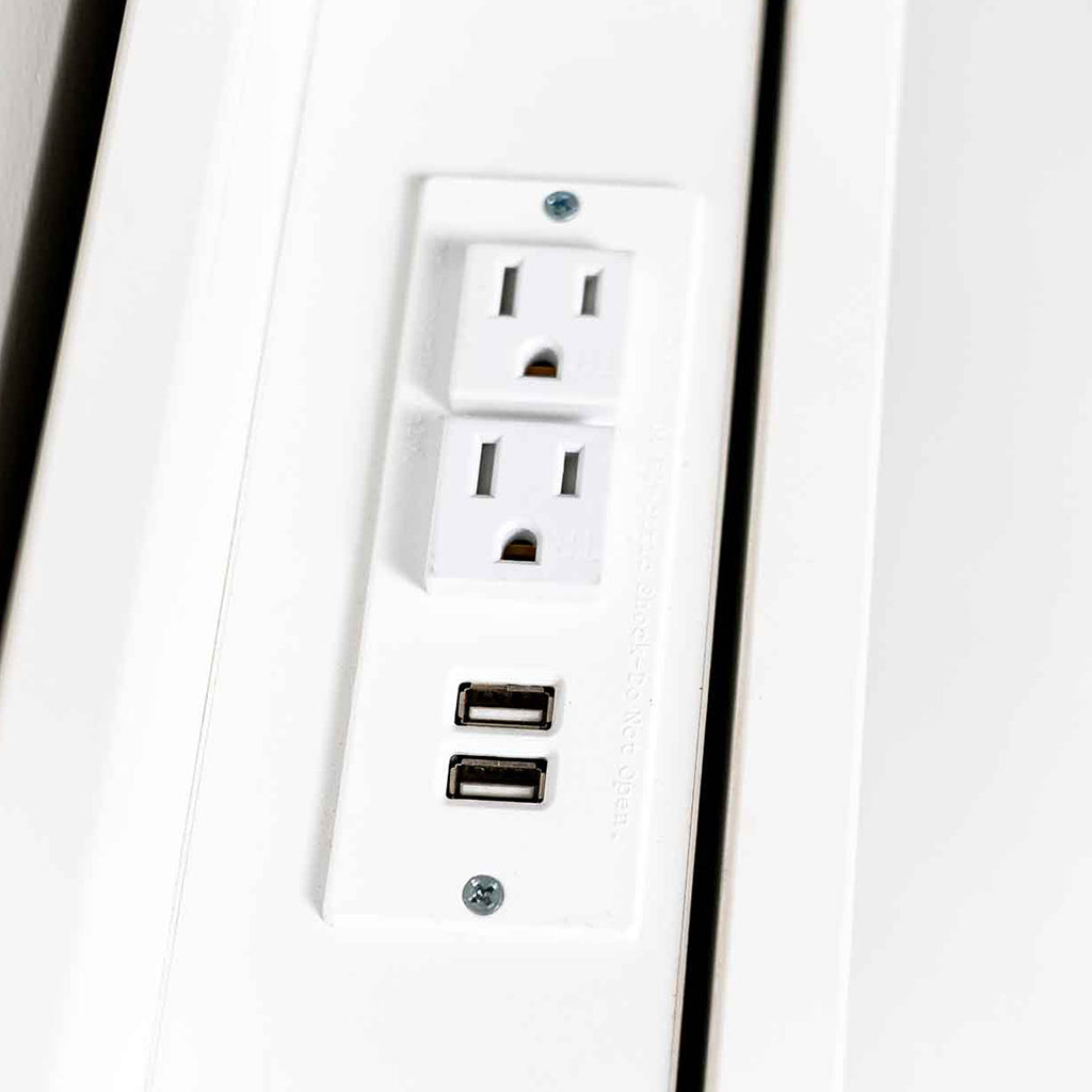 The Sofa Bed Light & USB Kit is available in White or Black, installed on a shelf made of the same cabinet color as your Wall Bed. Designed specifically for the Wall Bed with Sofa. *Not compatible with Table Bed*